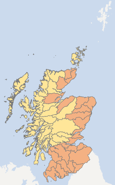The river catchments of the Wick, Helmsdale, Beauly, Ness, Findhorn, Tay, Earn, Forth, Leven (Dunbartonshire), Firth of Clyde, Loch Fyne, Argyll Coast, Awe and Etive, Loch Linnhe, Lochy (Invernessshire), Loch Shiel, Loch Alsh, Loch Maree, Northwest Highlands, Kintyre, Orkney, and Shetland have been raised to Alert.