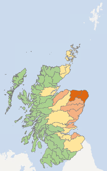 The Deveron and the rest of the Spey and Ythan remain at Moderate Scarcity.