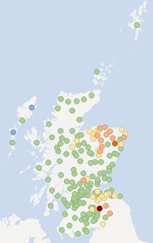 Orkney and Shetland have recovered to Early Warning and the Conon, Dee (Aberdeen), Esk, Earn, Firth of Forth, Almond, Tweed and Thurso all remain at Early Warning.