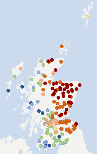 Farmers and businesses in parts of northeast Scotland are facing water scarcity restrictions following prolonged dry weather that has caused areas to reach Significant Water Scarcity. For further information visit Significant water scarcity guidance and Advice for abstractors and irrigators.